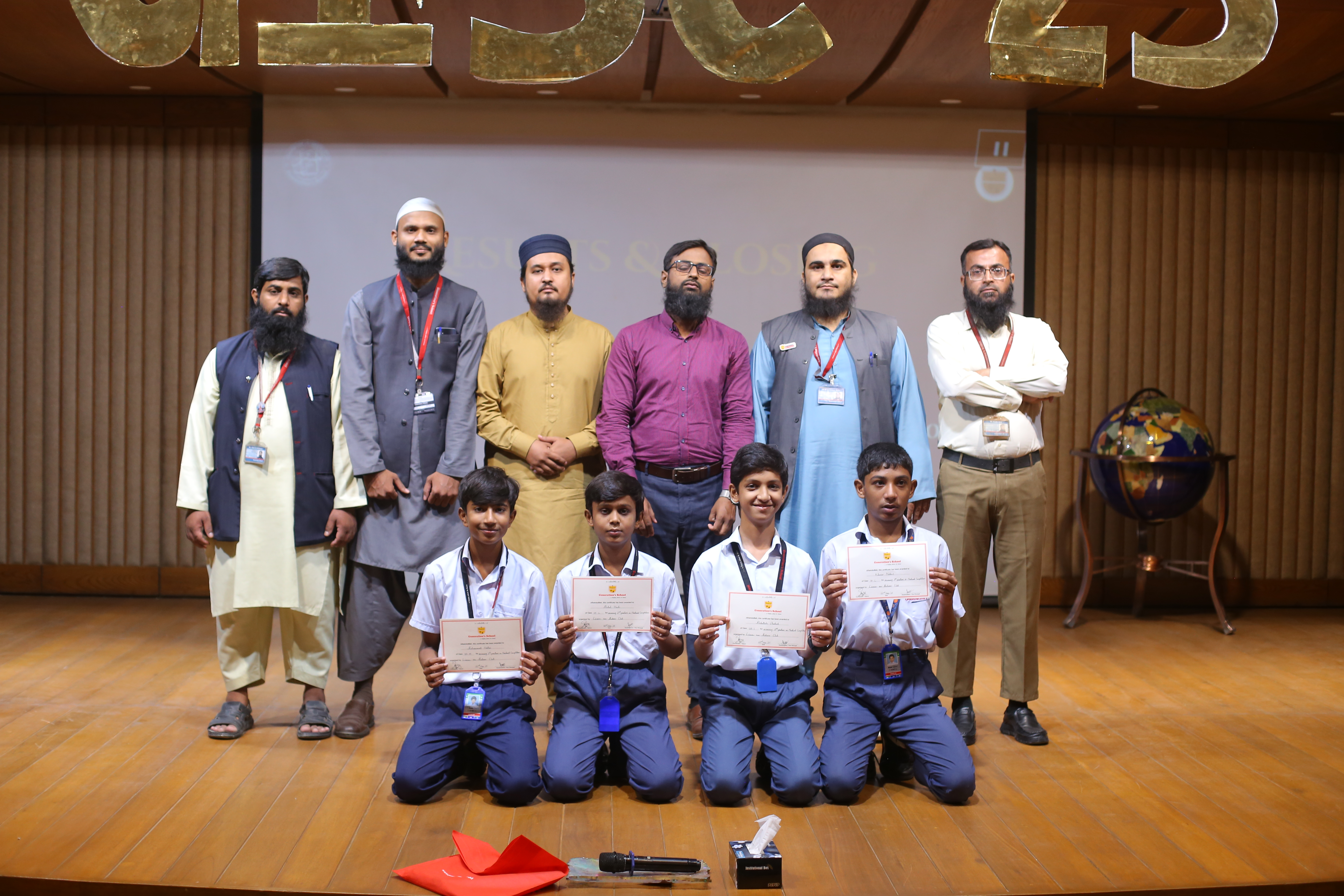 Raamiz Faisal XI-L, Ebad Ullah A1-L, Syed Sudais Shaikh A2-L, Abaan Moon XI-W, Zain Adeel XI-E, Mysha Sheeraz A1-C, Ayesha Fahad XI-S — the whole squad made us proud.